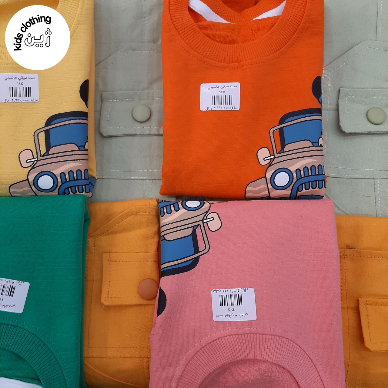ست بلوز شلوار میکی ماشینی فینگردار زرد/سبز